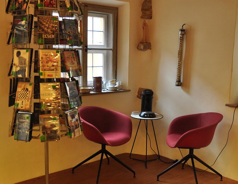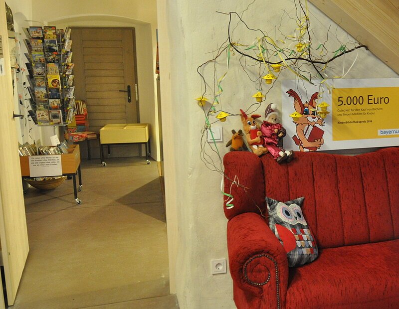 - Wohlfühl-Atmosphäre: Bei einem guten Buch und einer frisch gebrühten Tasse Kaffee oder Tee in unserer gemütlichen Lese-Lounge in der Erwachsenenabteilung und auf unserem roten Lesesofa im Eingangsbereich, sowie für die Kinder im heimeligen Lesezelt, in der Spielecke und auf der Lesetreppe im „Lese- (t)räumchen“ in der Kinder- und Jugendabteilung.