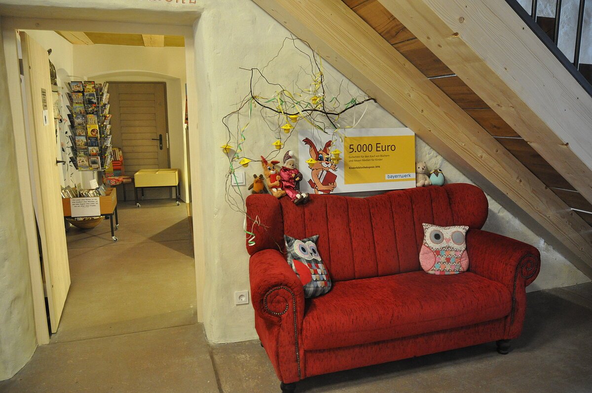- Wohlfühl-Atmosphäre: Bei einem guten Buch und einer frisch gebrühten Tasse Kaffee oder Tee in unserer gemütlichen Lese-Lounge in der Erwachsenenabteilung und auf unserem roten Lesesofa im Eingangsbereich, sowie für die Kinder im heimeligen Lesezelt, in der Spielecke und auf der Lesetreppe im „Lese-(t)räumchen“ in der Kinder- und Jugendabteilung.