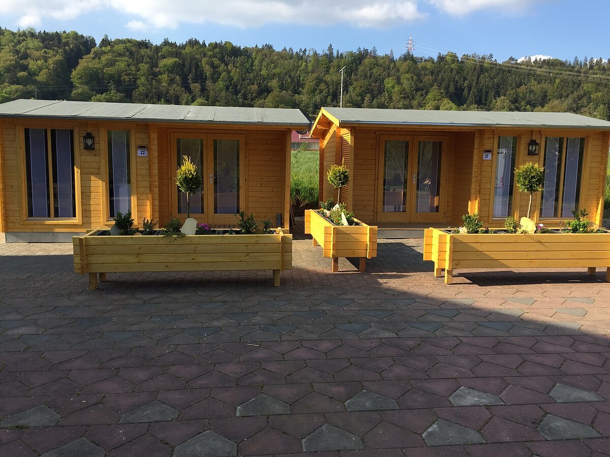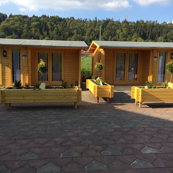 Jedes Mobilwohnheim ist mit einem Doppelbett, Etagenbett, einer Kochnische sowie einer kleinen Essecke ausgestattet. Bei 16 m² können bis zu 4 Personen untergebracht werden.