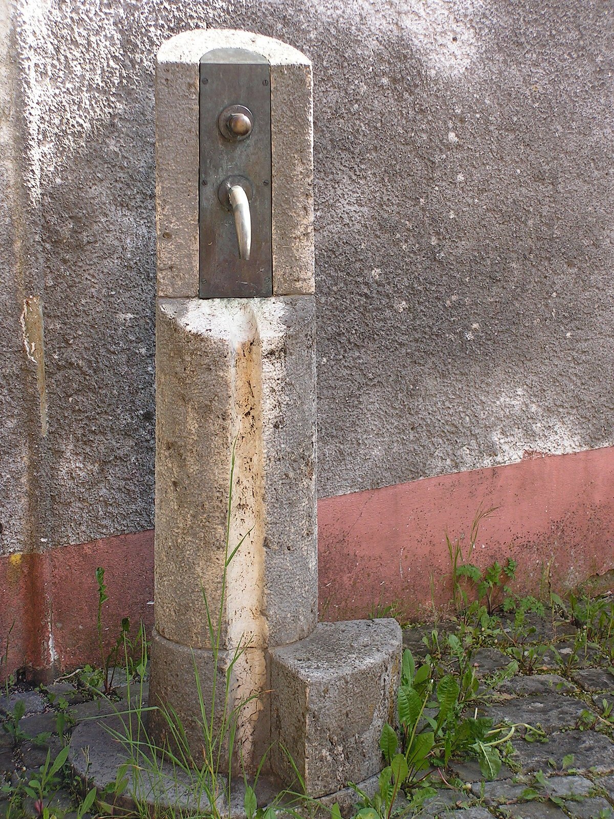 Der Brunnen steht in der 7-Täler-Stadt neben dem Schauerturm, früher Modlturm genannt, einem Wehrturm der im Jahr 1444 gebauten Stadtbefestigung.