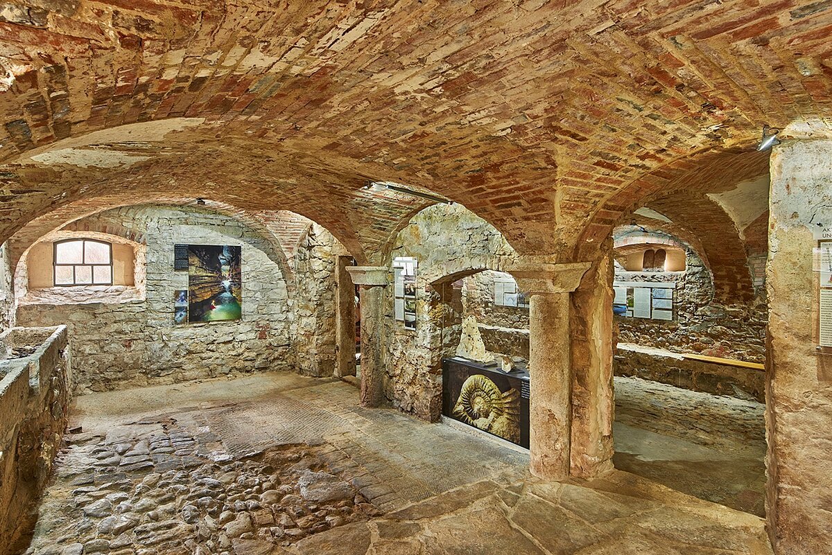 In den beiden Gewölberäumen im Erdgeschoß des Steinstadels, ehemalige Stallräume, präsentieren die Höhlenforscher der Karstgruppe Mühlbach e.V. ihre Forschungsergebnisse aus der Mühlbachquellhöhle, die ihren Ausfluss auf dem Mühlengrundstück hat. Unter dem mittleren Raum fließt sichtbar der Triebwerkskanal durch und stellt damit die Verbindung zur Mühlbachquellhöhle her.