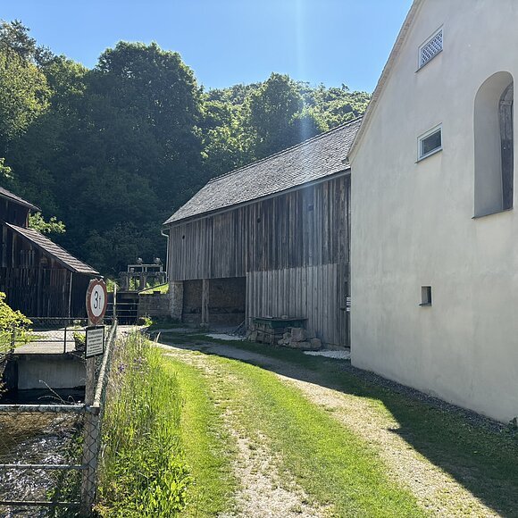 Im Steinstadel und einem Teil des Sägemühlstadels ist die Ausstellung Stein.Wasser.Höhle zu sehen. Sie beschreibt die Geschichte der Obermühle, die bis ins Mittelalter zurückreicht, ihre Instandsetzung und die Kennzeichen der Jurahäuser im Allgemeinen. Sie verdienen als einmalige Hauslandschaft der Altmühlregion besondere Beachtung und Wertschätzung.