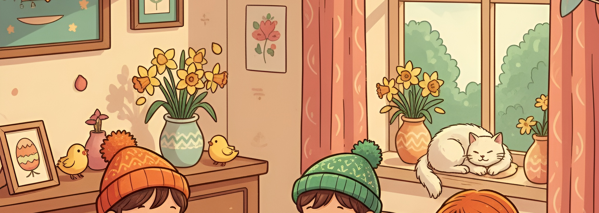 Es werden lustige Dinge zur Osterzeit gebastelt.