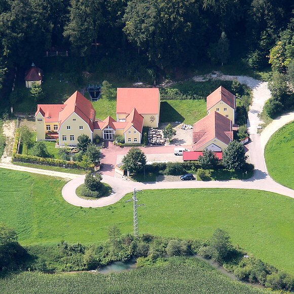 An der Gabelung zum Ort Haas bleiben wir auf dem Weg geradeaus und überqueren nach ca. 500 m die Weiße Laber am Eisernen Steg. Nach ca. 100 m fahren wir links weiter auf dem Schotterweg. Nun fahren wir auf der rechten Flussseite weiter durch das idyllische Tal und sind weit entfernt vom Straßenverkehr. Dabei kommen wir an der Premerzhofener Quelle und der Fischzucht vorbei. Bei Unterbürg treffen wir auf die Straße, wir fahren rechts und gleich wieder links auf den Radweg nach Staadorf. Nach der Ortschaft biegen wir links in die Straße nach Erbmühle ein. Hier angekommen müssen wir rechts den Berg hinauf nach Gimpertshausen radeln.
