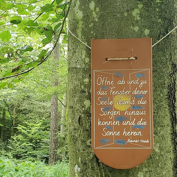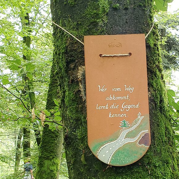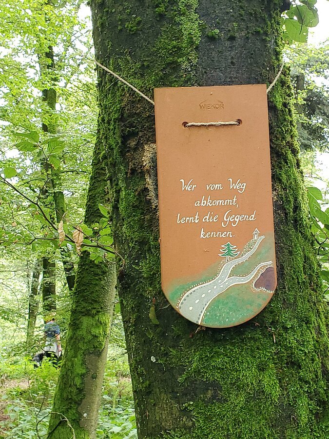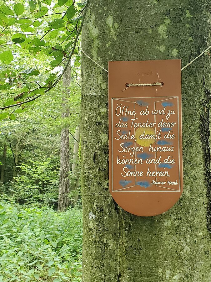 Der Weg der Sprüche und Weisheiten befindet sich an einem ruhigen, naturbelassenen Waldweg in mitten eines wunderschönen Mischwaldes mit viel Laubbäumen. Der Sprüchewald ist nicht direkt mit dem Auto erreichbar. Er befindet sich am Wanderweg Nr. 1, dem Naturerlebnisweg Kreuzberg/Weiße Laber neben der Ödenburg in Hainsberg. Im Sprüchewald findet man keine Verbindung zum Wlan, aber eine bessere Verbindung zu sich selbst. Hier findet man eine herrliche Stille und saubere Luft zum Atmen. Beste Voraussetzungen zum Entschleunigen und Erholen.